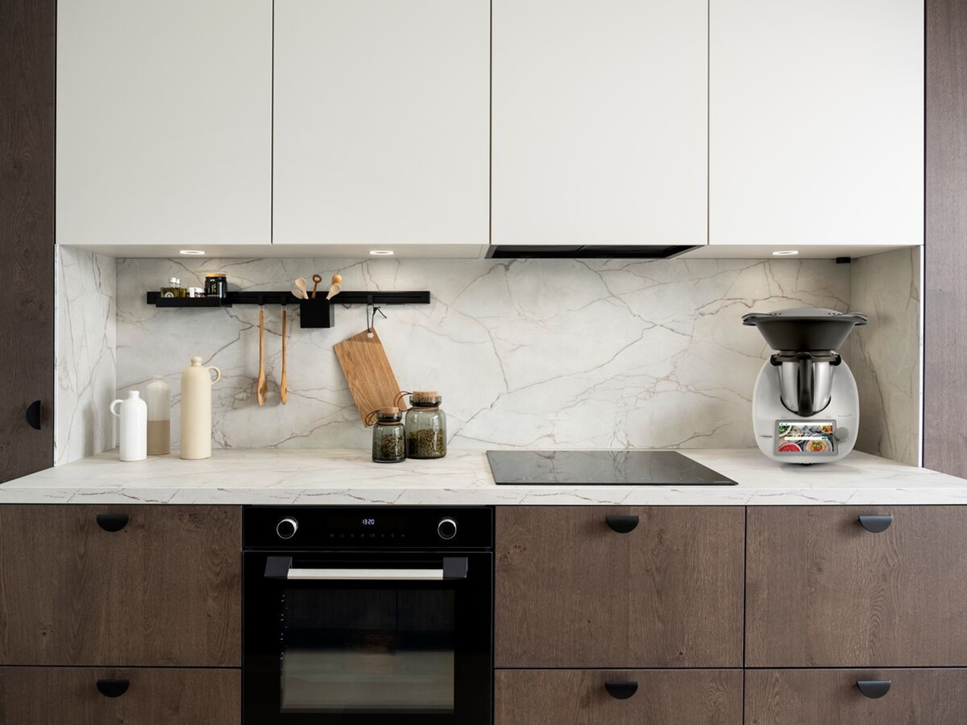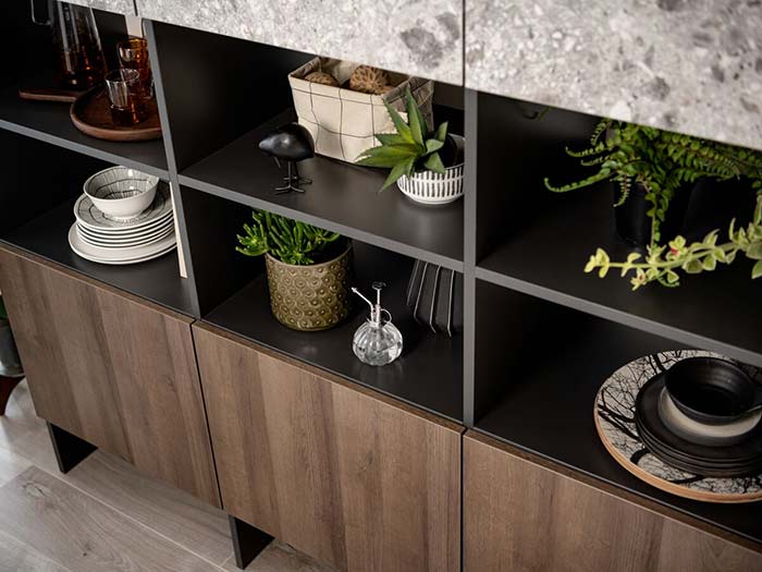 Cette philosophie prend forme à travers des compositions sur mesure, où le bois, les teintes naturelles, les lignes épurées et les solutions sans poignées se combinent pour créer un espace qui respire et inspire.