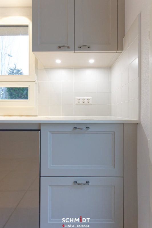 - Une fonctionnalité renforcée avec des coulissants modernes et un agencement optimisé par Schmidt Genève Carouge.