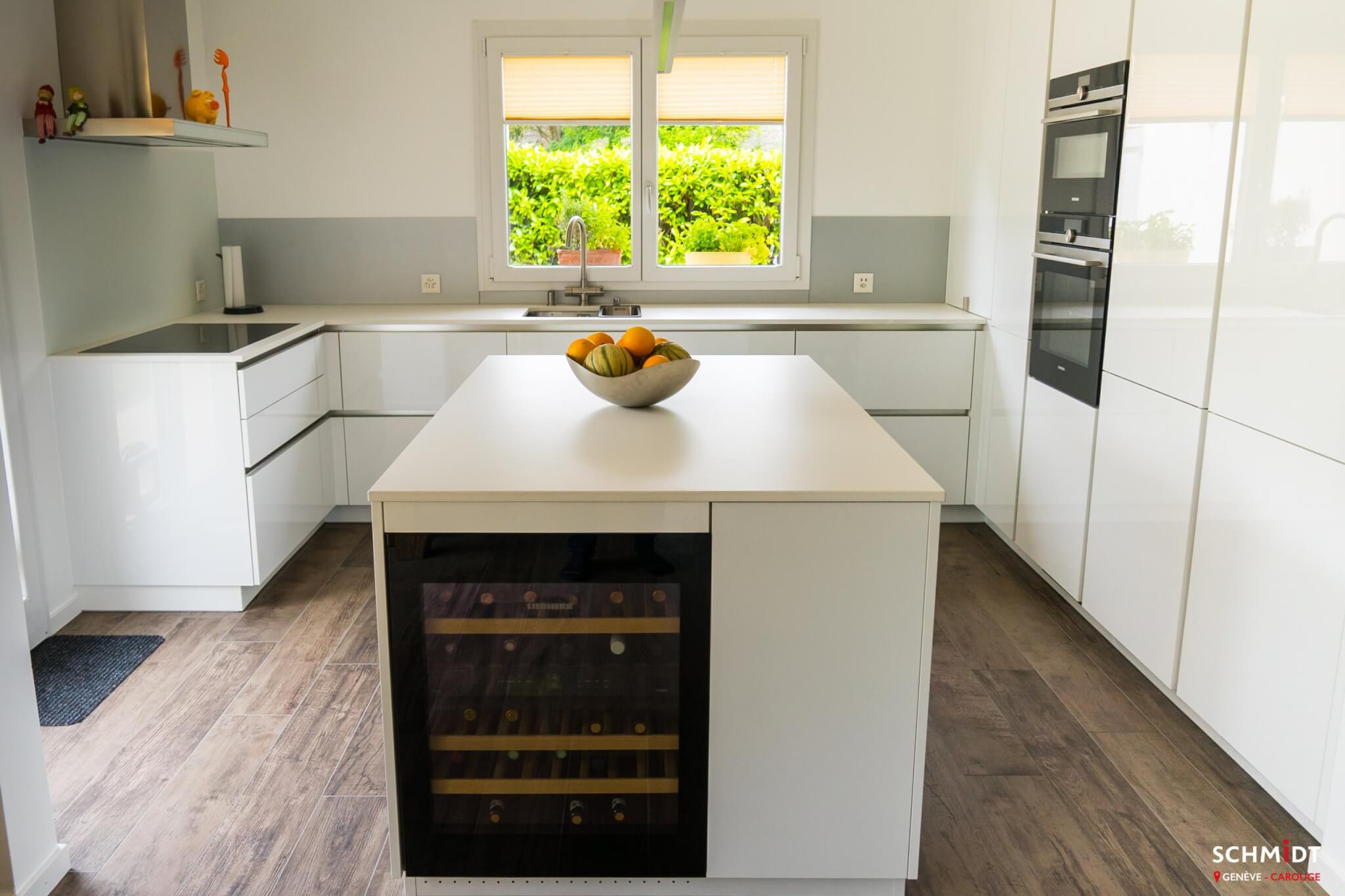 - Îlot design avec sa cave à vin sans poignée